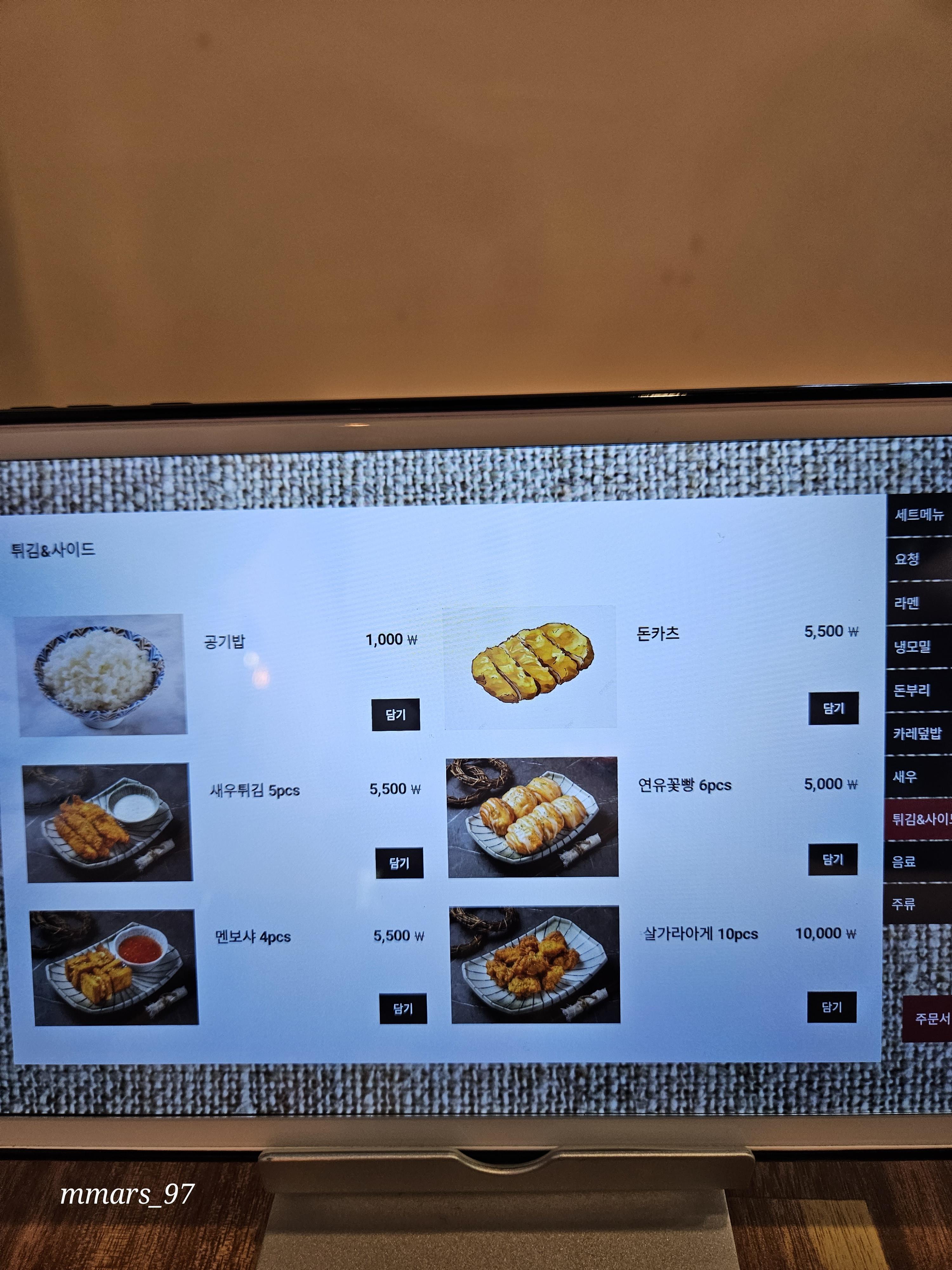 세트 메뉴도 있고, 단품, 사이드 메뉴도 다양하게 있어요