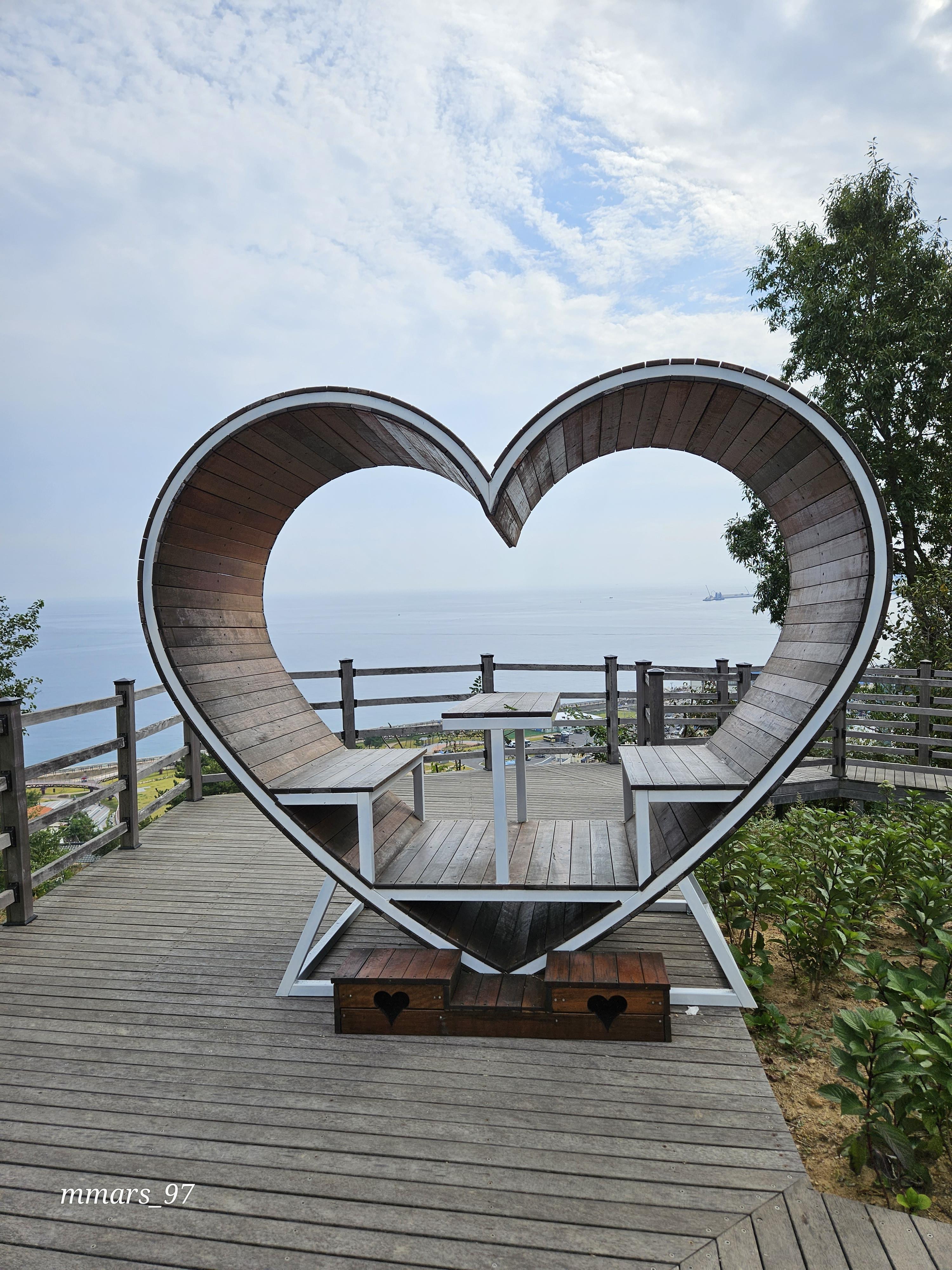 하트 밴치 뒤로 삼척 바다가 시원하게 보여요