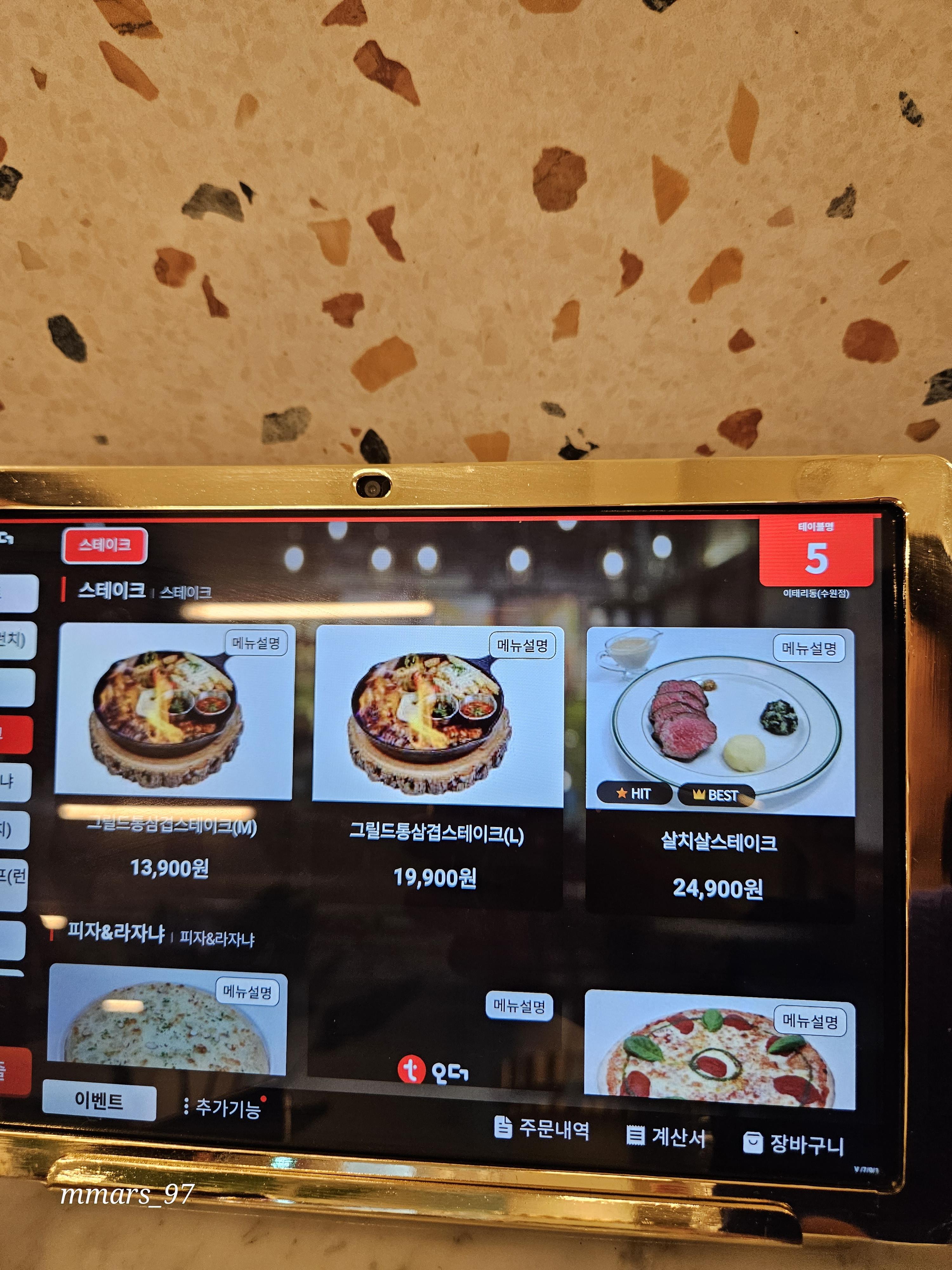 메뉴는 런치 세트메뉴부터 스테이크, 파스타, 샐러드, 피자,