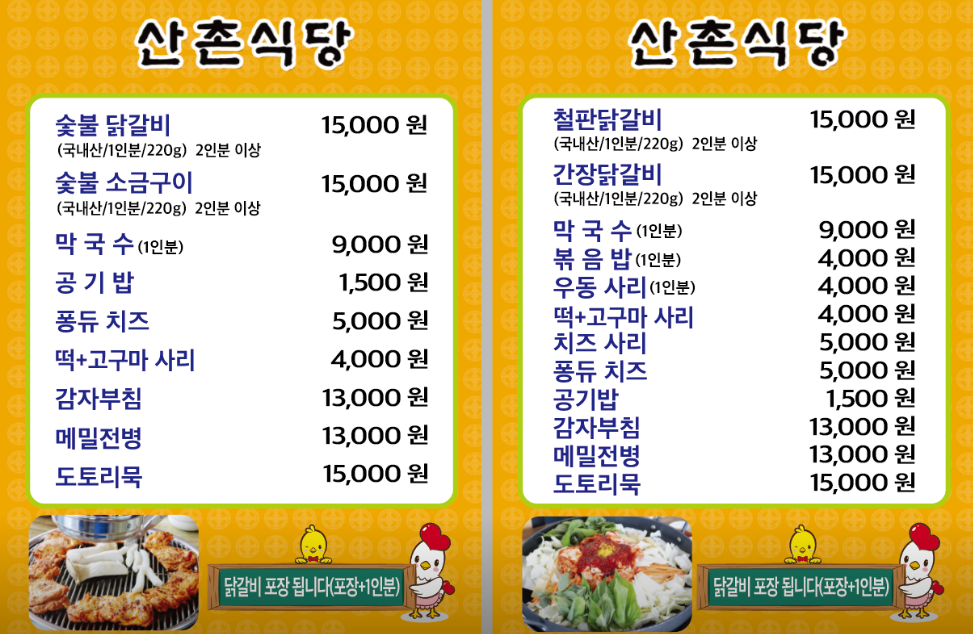 어디서 봐도 '산촌식당'인지 다 알정도예요 ㅋㅋㅋㅋ