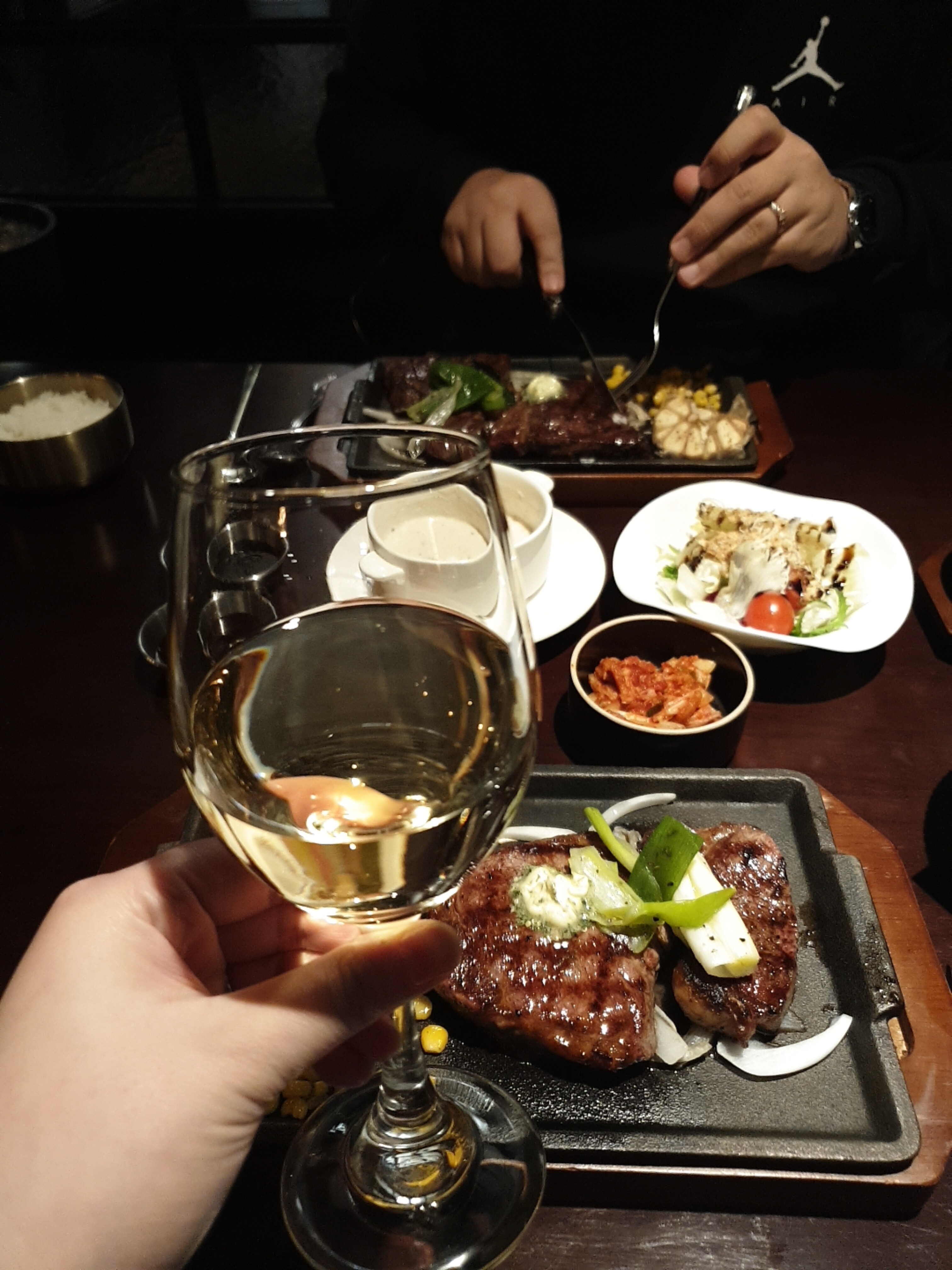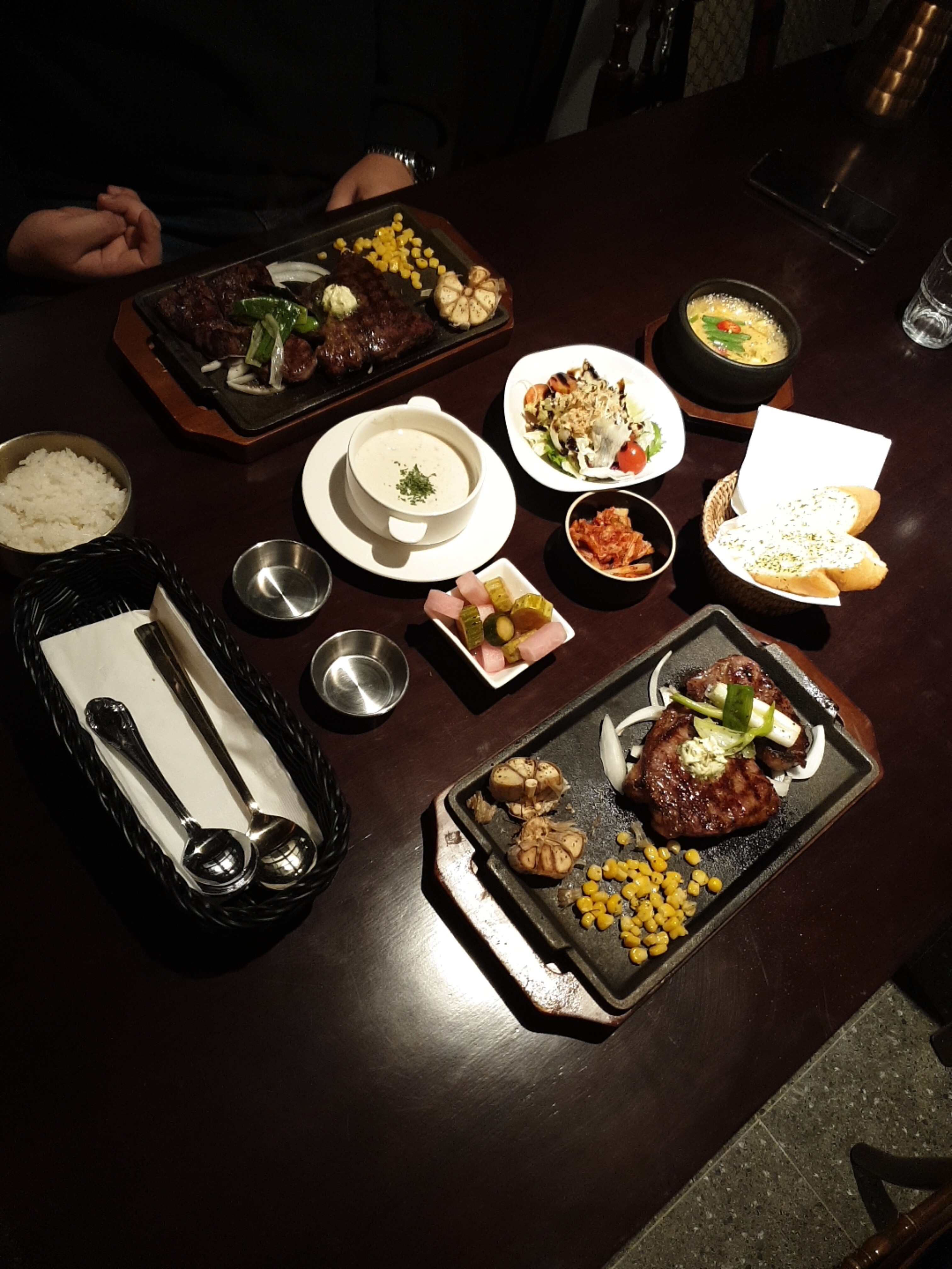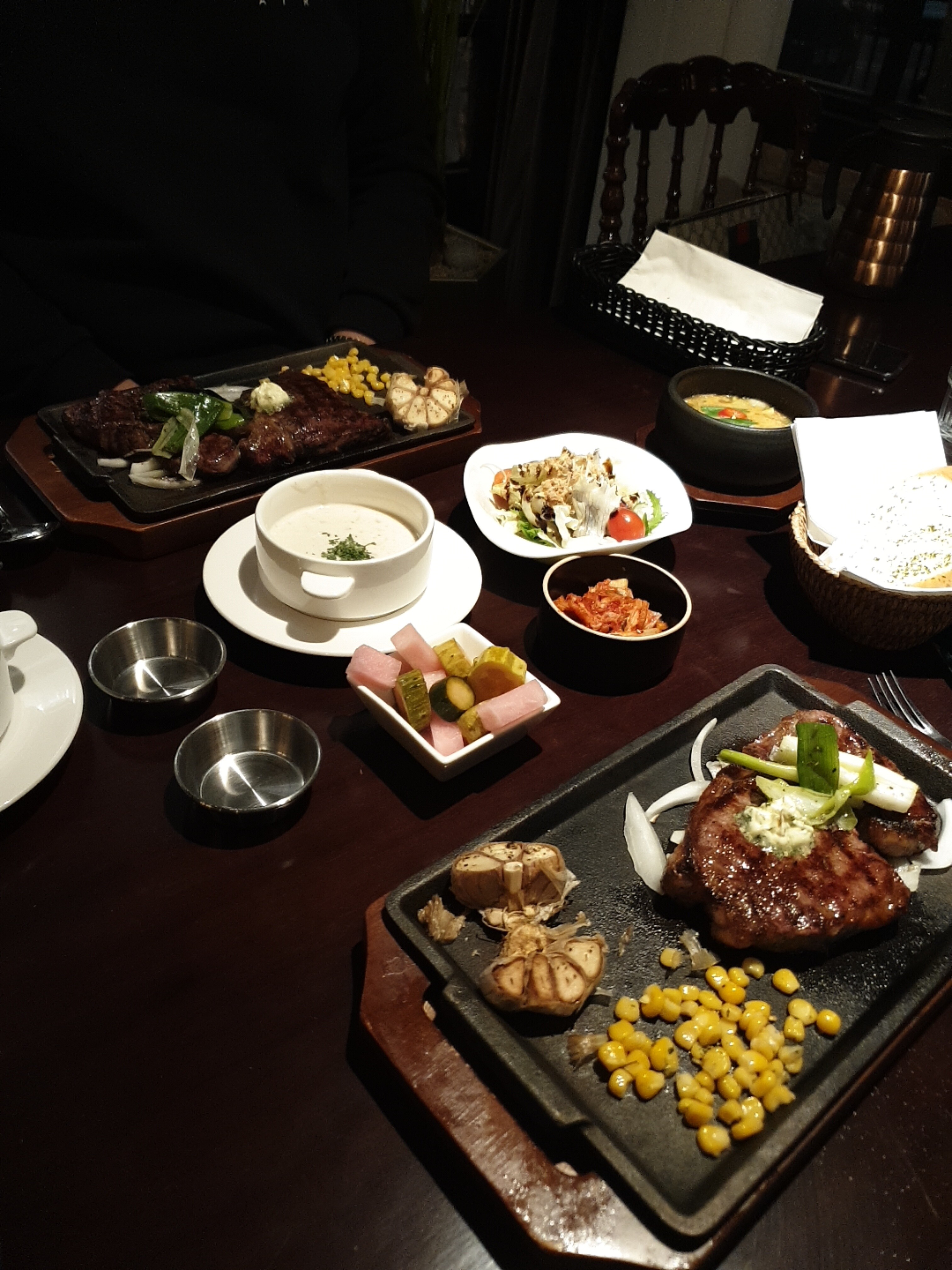 질 좋은 스테이크를 배부르게 먹었는데