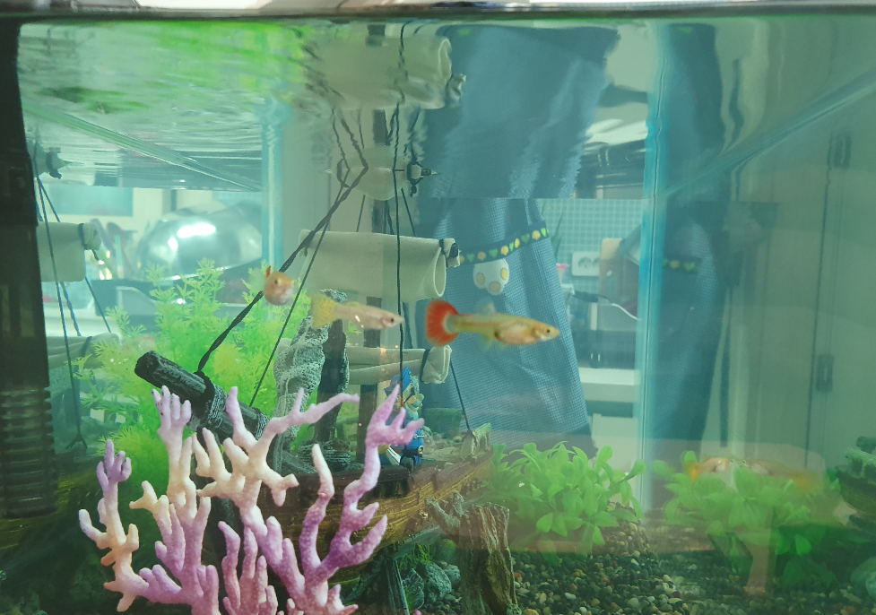 남편님께서 사고 싶어 한 해적선 때문에 어항이 매우 작아 보여요