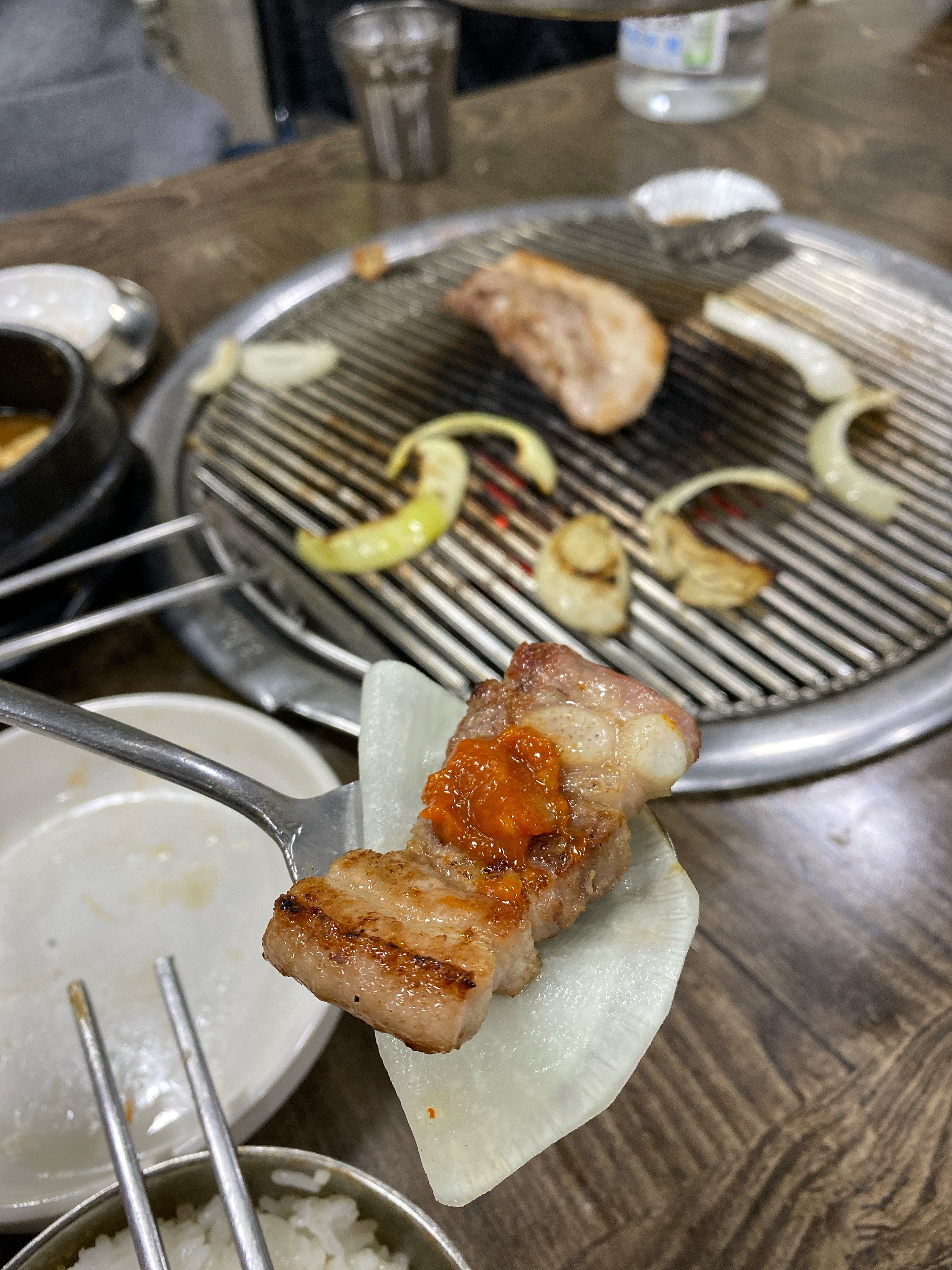 사실 꽃등심만 먹어도 딱 적당 했는데 옆에 계신 분들이 삼겹살을 맛있게 드시더라구요