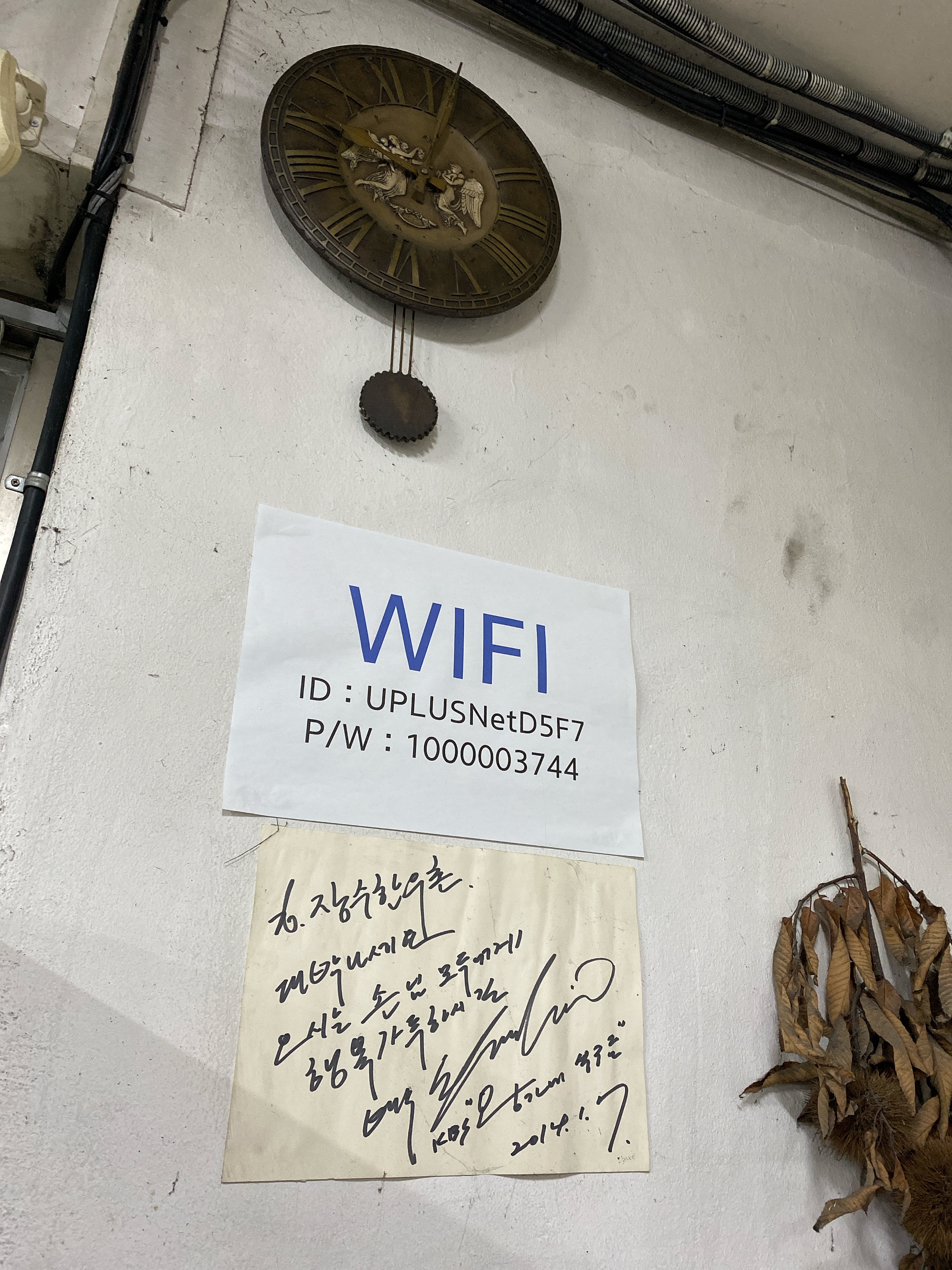 한쪽 벽면에는 와이파이 번호도 적혀 있어요